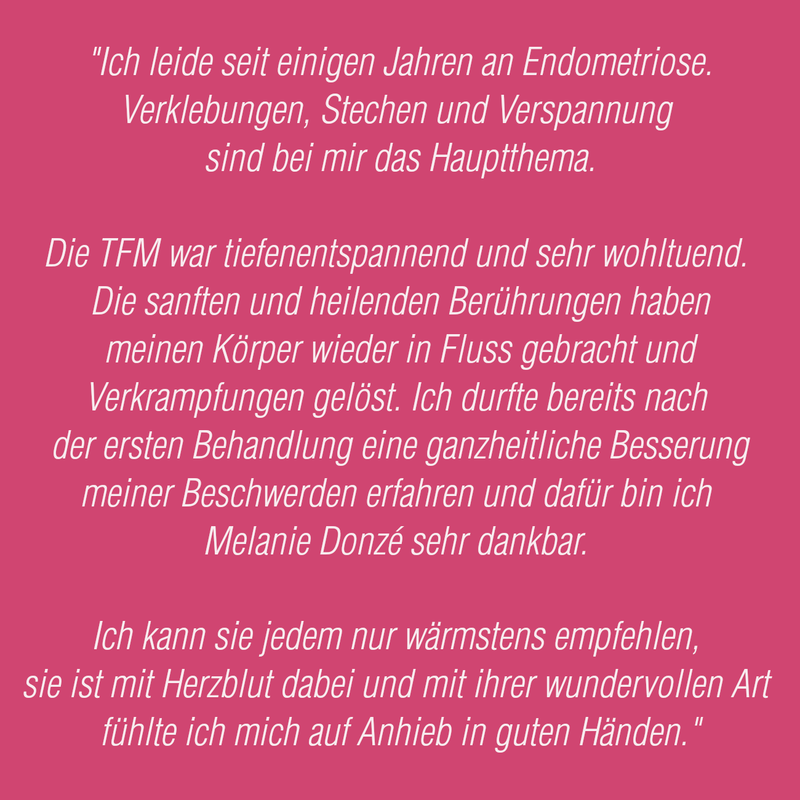 Weitere Infos zur Therapeutische Frauen-Massage (TFM) findest Du unter www.therapeutischefrauenmassage.de.